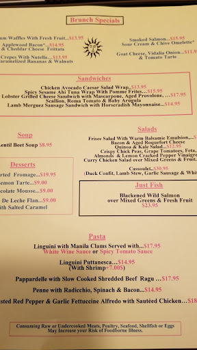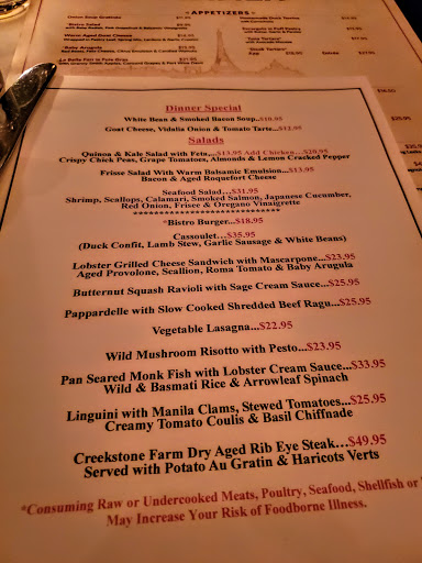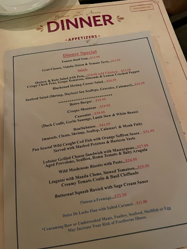 Wait staff were attentive and accomodating. Atmosphere was comfortable and inviting. Food was fresh and tasty. Very typical French ambience, they did not rush you. Menu was small but with adequate choices and selections you would expect in a french bistro.