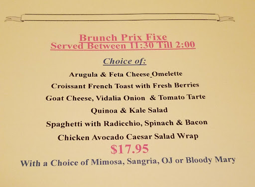 I just had brunch there an hour ago. Stumbled across it completely by accident. I had a hot chocolate and the eggs benedict. Comfortable little restaurant. The hot chocolate was obscenely overpriced ($4.55 or something to that effect), but was made the way hot chocolate should be - with milk and chocolate, served creamy and hot. Nothing ecstatic - not the best hot chocolate Ive had, but better than your average run of the mill coffee place or diner. The Eggs Benedict were just as eggs benedict should be - lightly toasted english muffin covered in a slice of ham, slice of tomato, poached eggs with the yolk perfectly runny, all smothered in Hollandaise sauce. A light leafy salad with some sort of red wine vinaigrette was on the side. A dash of pepper over everything. And, unlike the hot chocolate, reasonably priced ($11.95? $12.95? something like that). The service was polite, quick, efficient, and discreet. The atmosphere was comfortable - but in the polite, visiting your grandmother sort of way. Actually, this would be a great place to bring your mother or grandmother for Sunday brunch. Im decently sure when I walked in I was the youngest person there by 20 years - until a young family walked in. All in all, not a mind blowing experience by any means - but the food and service were good, the atmosphere was comfortable, I had nothing to complain about - and at $23 for brunch (tax and tip included), which is reasonable, I think it deserves 5 stars.