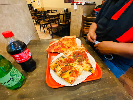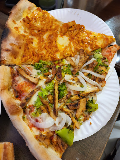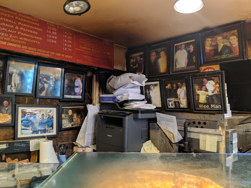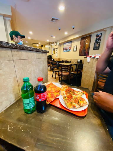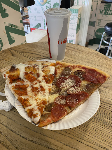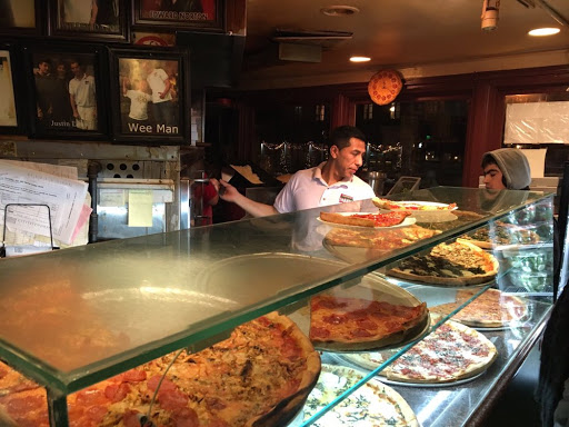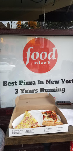 On a random Saturday we were craving for some "New York Pizza." Yelp led me to this joint so there we went. Upon entry we were fascinated by the celebrity photographs on the walls. I was like, "Hmm... they must be really special..." I ordered a Nonna Maria and a Mushroom. I got a free soda using my Yelp check-in. First bite into the Nonna Maria I fell in love. The tomato sauce is indescribably fresh and unique. Tasted like seafood-ish to me. The thin crust is crisp full with flavors. Yummmm~~~ My man had a Pepperoni-Sausage and a Grilled Chicken. Both are meaty, soft, tender and juicy. How heavenly tasty :) Were extremely pleased with the food quality and service. The Albanian man who reheated my pizza were happy to serve us (cause he was smiling) and he wouldnt mind our questions regarding the restaurant history. We left the place smiling as well. Couldnt be happier to discover this amazing place :) Plus, you cant go wrong with a restaurant which has been voted by Food Network as best pizza in NYC for 3 years!