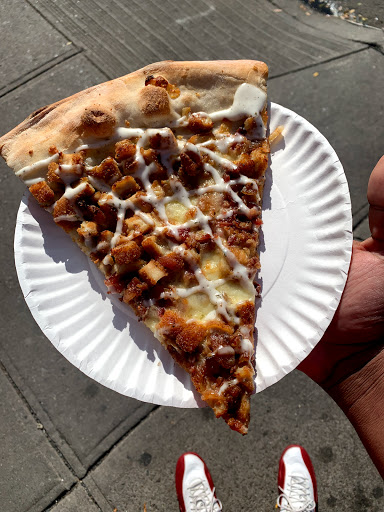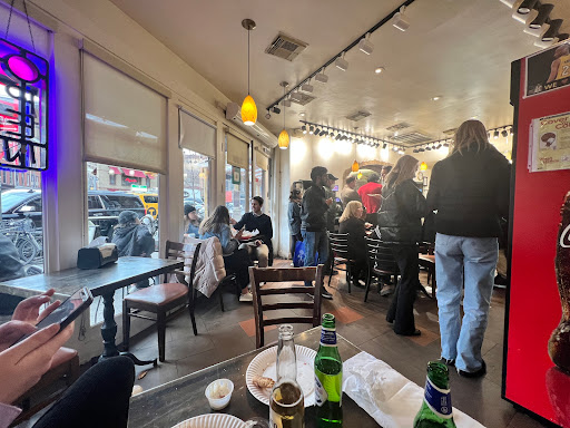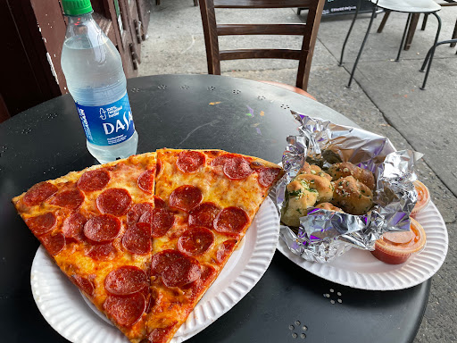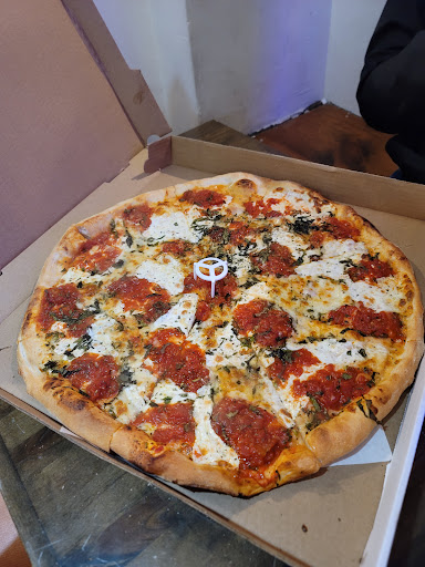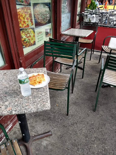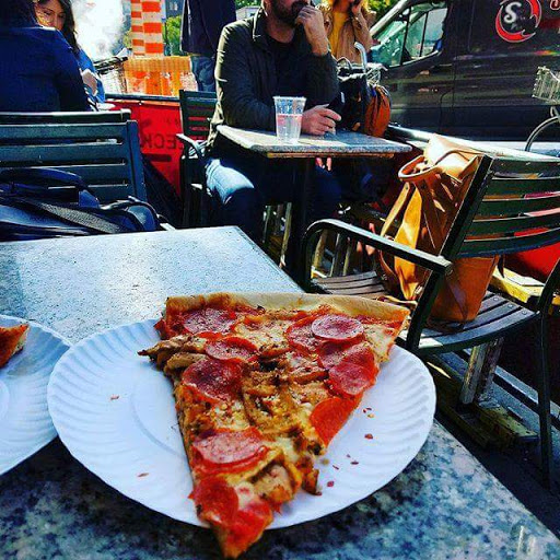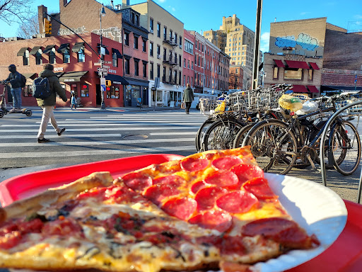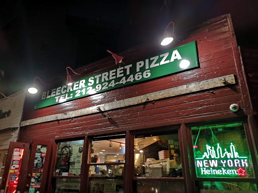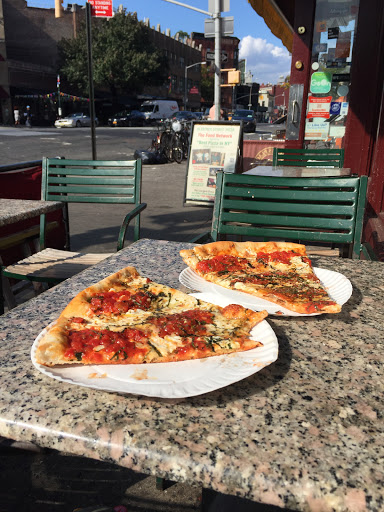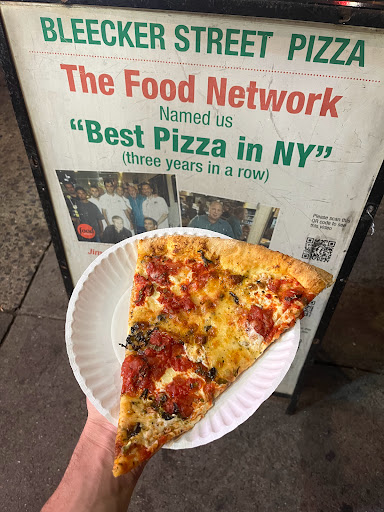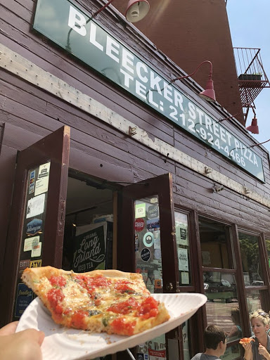 Very good pizza. A bit of a hassle since the restaurant is very small and crammed. Feels like a sardine can, but were here to eat pizza not complain about personal space! This pizza definitely lives up to its name. The sauce is superior because of the parmigiano cooked into it. The base yields a crunch that will send chills down your spine (in a good way of course). The cheese is fresh, and you HAVE TO make sure to pour some fresh, cut-on-premises parmigiano onto your slice! That is the best parmigiano you will ever taste - I promise. Overall, this is the best place in New York where you can get a single piece of thin slice pizza. I would rank Lombardis and Kestè higher, but they do not offer single slices. Also, Kestè is a neapolitan pizza, and therefore cannot be compared with Bleeker Street Pizza... Cant compare apples and oranges - you know the drill. This is not necessarily the cheapest (3.50/slice), but its well worth it. As always, the Margherita is amazing. Give it a shot and you wont be disappointed.