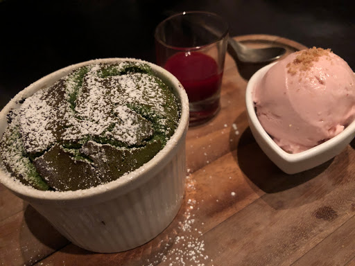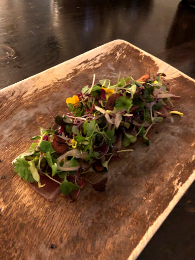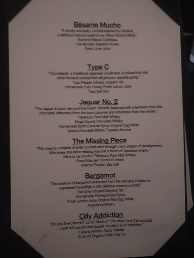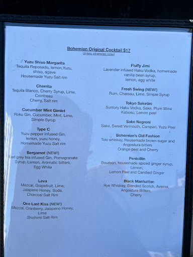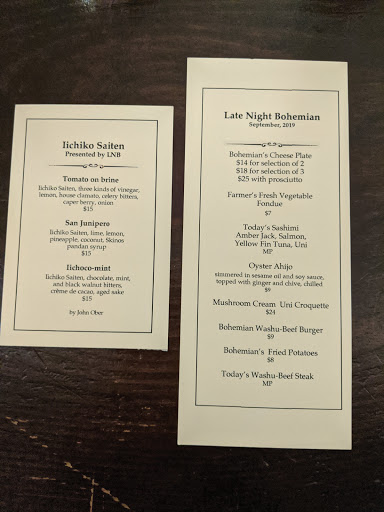 Intimate lighting + Expensive living room furniture + Modern Art = Cozy dining environment at Bohemian. The place was small but felt very warm and inviting. The service was wonderful as the staff are both knowledgeable and friendly. We sat at the bar area, but to me, it looked like it was more comfortable than the low coffee table seatings. (im fairly tall, so id have to hunch over if eating at those tables). It also gave us an opportunity to watch the bartender do her magic. She put so much care into making out drinks, it seemed like art in motion. We ordered the cucumber cocktail, the cilantro cocktail, and a fruity strawberry cocktail. all of the drinks were delicious! For the meal, we both had the tasting menu ( i think everyone at the table has to order it if you want to get it). It included the veggie fondue, uni croquette, bronzini, sashimi, and yuzu panna cotta. My favorite parts were probably the Bronzini and yuzu panna cotta, although everything was delicious!. For 2 people both ordering the tasting menu, you get 1 bronzini to share. Its roasted in a cast iron skillet with potatoes, rosemary, capers, anchovies, mushrooms and cauliflower. It was super filling and delicious! The dessert was also delightful, but unfortunately i was so full by then that i could not finish the whole thing. I still look back regrettably at the last few bites that i left to waste. Will definitely be coming back! PS i will not give anyone who tries contacting me here a referral
