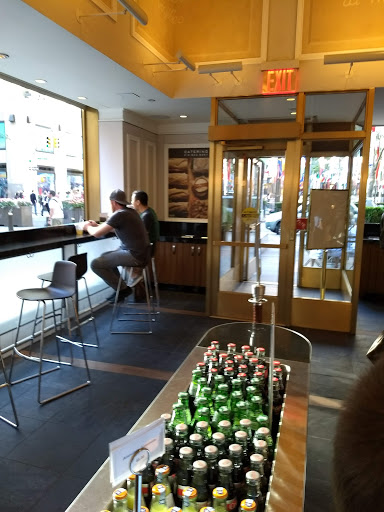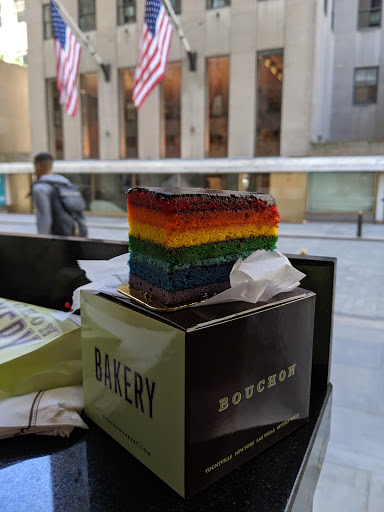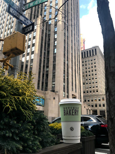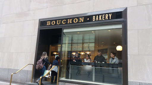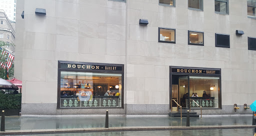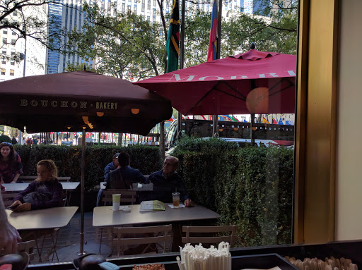 Bouchon Bakery offers a number of delectable treats, from delicious pastries to macarons. But you can also order a number of sandwiches and soups for a heartier meal (their grilled cheese sandwich and tomato soup is legendary). Theres also a nice coffee selection. Because of the location, this one caters mostly to tourists -- the staff works hard to move the line quickly. There are a few outdoor seats right on Rockefeller Plaza, and even the indoor counter seats give you a nice sense of the space. They deliver to offices in the area.