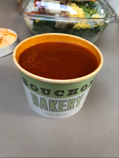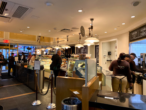 Definitely a place to treat yourself -- both because its pricey and because the delicious stuff is the fattening stuff of course. Soup and grilled cheese sandwich combo is insane, especially if theyve got the sweet onion soup. Chicken salad on a pretzel bun is also a very solid choice. Great selection of coffees and baked goods as well. Cons are the priceyness and that its always pretty crowded, being in Rock Center. But the plus side of that is you can often sight the SNL folks, or guests of NBC Studios.