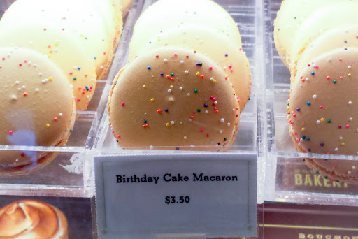 The macarons at Bouchon are the best ones Ive ever had with the perfect crunch on the outside and smooth fillings. Service: Helpful =) There may be a bit of a slow line when you go since Bouchon is so popular. Ambience: Its a cafe setting with outdoor seating in good weather. Its a great place to meet up with friends for a snack or coffee. Food: If they have their birthday cake macarons, GET THEM!!! They also have macarons with jam filling along with a large selection of other sweets!