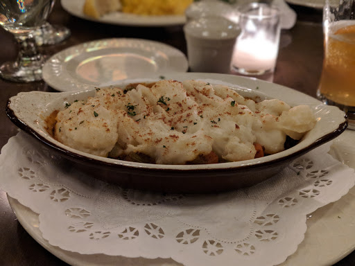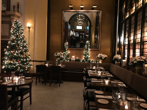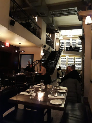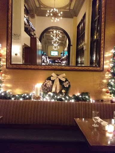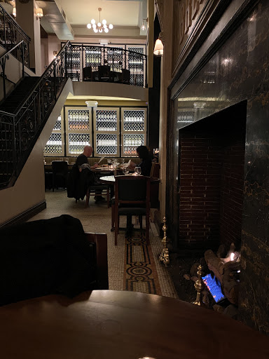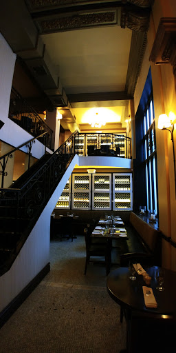 I stumbled upon this restaurant looking for an "organic" restaurant in the neighborhood of my hotel. Although Im not sure of their policy on serving only organic, I am sure that my dinner was made with high quality ingredients and by a competent chef. The menu has a variety of meals, from seafood and venison to chicken and mashed potatoes and daily specials of corned beef. Every dish seems to have something special, but not in a pretentious way. The menu for the restaurant is on their website, so one can decide for oneself if its expensive, but the prices are fair for the ingredients and quality. The staff was competent, attentive, and pleasant, but not exceedingly warm. That might only be the case with our server, and for me, a waiter/waitress who gets things right and on time is more valuable than a friendly server who makes inexplicable mistakes. The restaurant is informally split into two areas: the front with a bar, stools, and a few tables; and the back with a more elegant feel and larger tables. But even with the decor being so fancy, I did not feel uncomfortable with my boyfriend and I in jeans and nice shirts. On the night we visited, the fireplace in the farther section of the restaurant had a warm fire burning. The architectural details of the space are very romantic, especially the large stained glass windows backlit at night and the ironwork on the second level balcony (not sure if that is used for seating or special occasions). By the time we were done with dinner at 10, the bar was already a bit more lively and had a small, comfortable crowd.