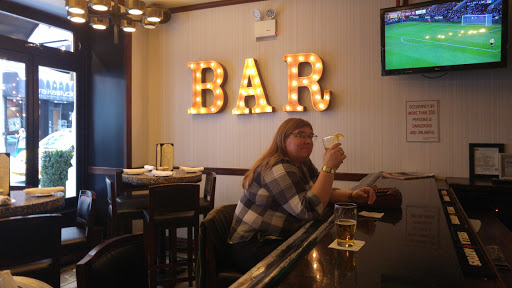 My boyfriend and I stopped here for appetizers and drinks the weekend before St. Patricks Day. Everything was fairly priced for a busy, touristy area of Manhattan. I went with a chicken quesadilla and a glass of Pinot Grigio, and my boyfriend went with spare ribs and a beer. The quesadilla was crunchy on the edges and cheesy in the middle, and filled with a spicy salsa with flavorful onions and peppers, which had a smokey, grilled flavor to them. It had a freshly-cooked taste and looked carefully prepared — not just your typical bar food that’s greasy and quickly swapped together. I traded my boyfriend a piece of my quesadilla for a spare rib, and I must say, as a vegetarian of 13 years (I brought meat back into my diet in 2012) who is still picky with certain red meats, ribs being one of them, I LOVED these things. They hit the spot, and had a hint of saucy spice — no gamey taste at all, and they didn’t have that leathery texture I often find ribs have. The meat almost fell off the bones as if they were cooking in a Crock-Pot for hours (mmm).