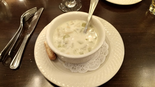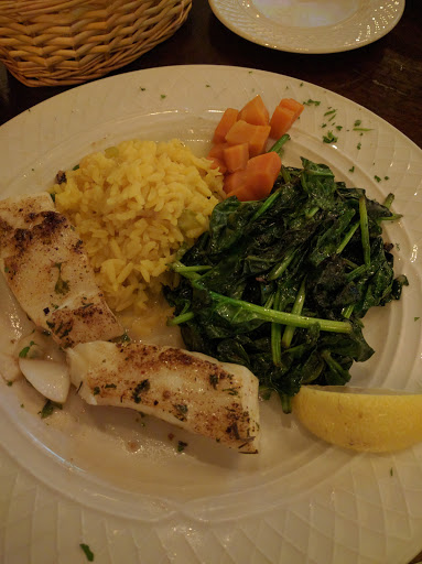 My parents were in town and some relatives of us invited us for lunch there. They made a great choice! First of all, the place is beautiful! It looks like an old church with stained-glass windows, and a huge fireplace. It made me feel like I was eating in some historic place. Maybe I was? Second, the food is great! I had the Black Angus Steak, which was done like I wanted and was delicious. My parents took the Salmon. According to them - its the best salmon they ever had! The service was also great. Nothing to complain.
