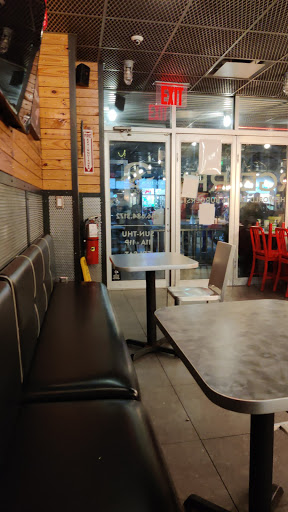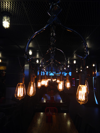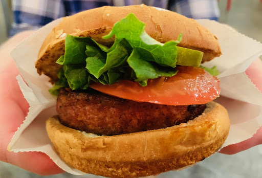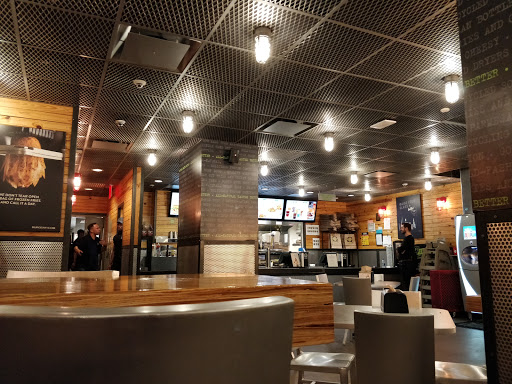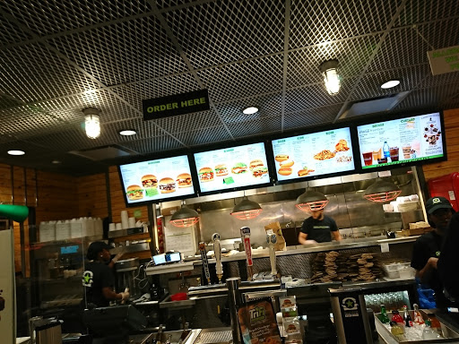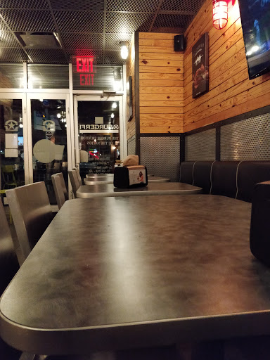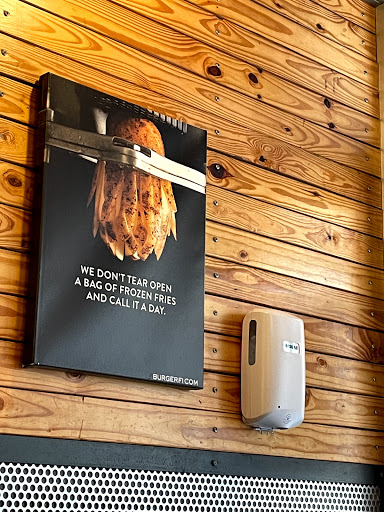 Friendly staff; quick cooking time; choose your own soda dispenser; hot hearty portions; beef, chicken and vegetarian options; clean floors and tables; tvs on both sides of the walls; long tables for big groups; wheelchair accessabe; not cramped; highly reccomend. The interior was industrial metal and wood vibe and its great to have a masculine rugged theme with burgers. There is an unlimited soda dispenser and you choose whatever you want. Major plus. The staff was friendly, so that is a plus.