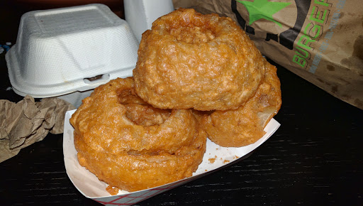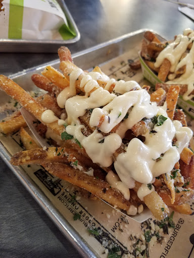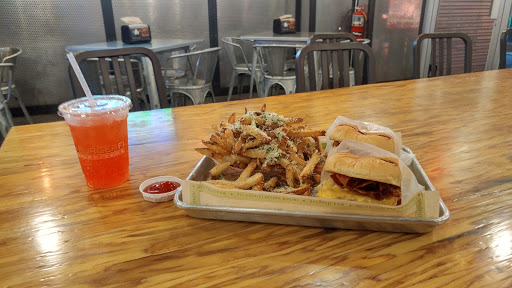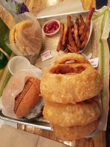 Food: 4 Stars Service: 3 Stars Online Ordering: 0 Stars Their burgers are delicious. My favorite is the breakfast all day (BAD) burger with hasbrowns and maple syrup. The varieties of fries are great. The main problem is that this place can be slow for fast food. Also, their online ordering interface is atrocious. It only allows you to choose two toppings (including paid toppings). The special instructions field is so limited in characters that its useless. Also, the one time I used this service their timing was way off, so that we waited for our food a good 10 minutes after theyd said to pick it up, though half the order was already made and sat there getting cold and soggy.