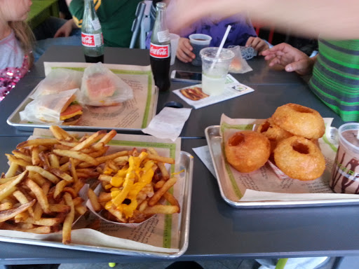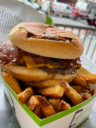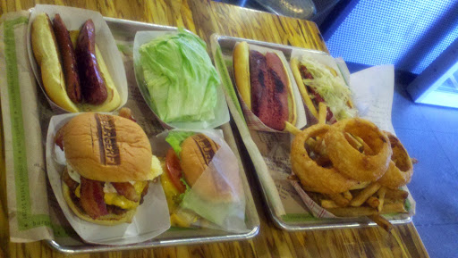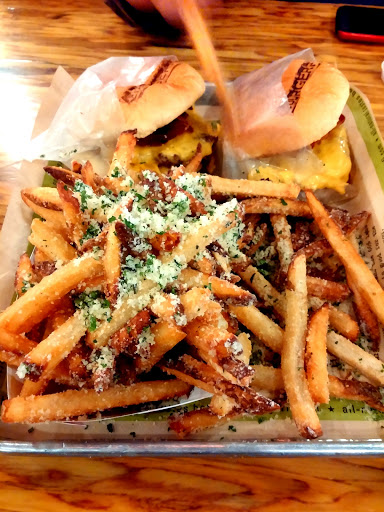 This place is great. I actually think the burgers and the fries here are far better than Shake Shack, but the lines here are much shorter than what Ive experienced at Shake Shack. The burgers are heavy so dont bother getting a double burger unless youre just greedy or famished. I was stuffed after eating a double burger even though it was my first meal of the day. The Parmesan cheese fries are great. The chili cheese fries are also good, but they give you such a small amount of chili and cheese that I dont believe they are worth the extra cost.