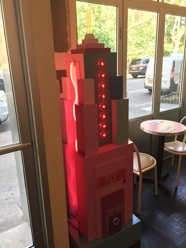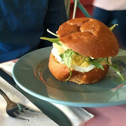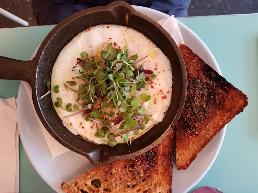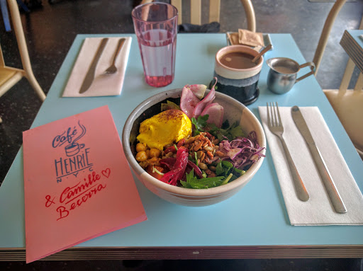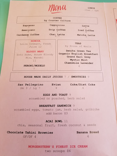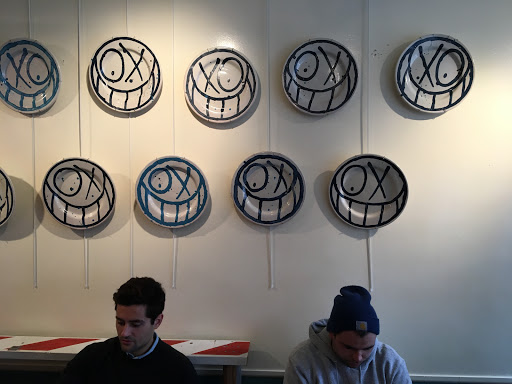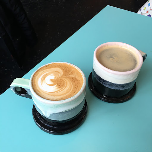 Table service if youre staying, fast service if youre going, and the perfect music playlist. I accidentally discovered this cafe with my partner on a date and they played all of our favorite songs, by The Cure, Nick Drake, the good stuff I always look for in a cafe. Its got a old school diner-like feel (the tables) and yet a real sophisticated, NYC counter-cultured vibe (the artwork). Its a precious gem for sure. First time today - Will come back.