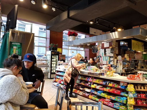 Not a coffee shop as the name suggest, is a typical dinner/pharmacy/corner store. They have prepared food that is sold per weight, plus a sandwich/pizza counter where you can get something prorated to your taste. I did like it when visiting New York as the price is right and they are open weekends. You may get more privacy at the tables on the second floor. There are long cues on the single (? Im not sure there is only one, I didnt ask just went to the one in the second floor). Probably because oft the same bathrooms are not clean and smell as a train station bathroom. Service is efficient to the point of rudeness, but I went there for food, not for a long lasting friendship.