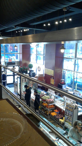 A great place to get take away or eat in with a large selection of hot and cold foods and various counters with a wide range of food options. There is a salad and fruit, hot buffet selection and sandwiches made to order. The food is of a high standard and reasonably priced. It is great of you want take away but have a healthier option. There are seats inside where you can enjoy the food and watch the world go by too. A great option no matter what time of day or night.
