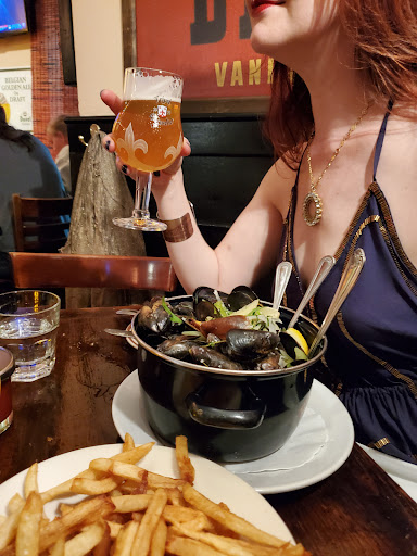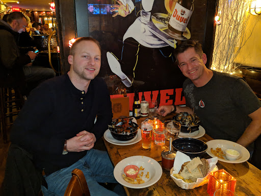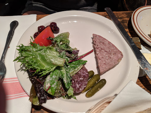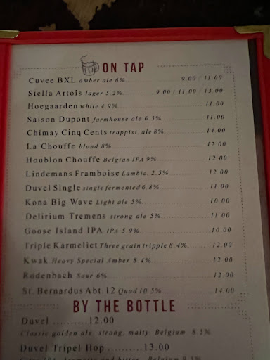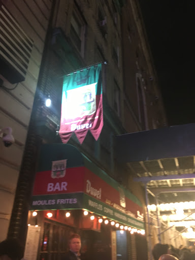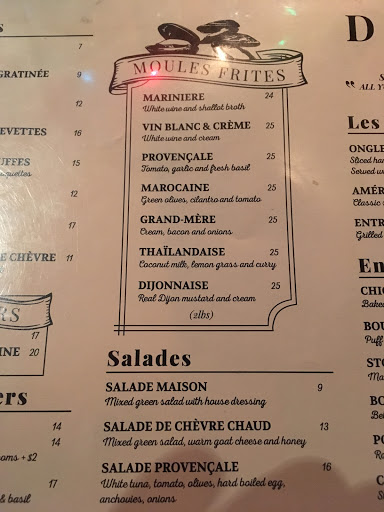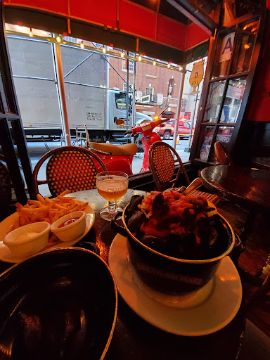 My wife and I ended up going here on count of poor weather predictions / this place being like 2 steps from Belasco Theatre. The interior was basically pretty nice. I had an idea what we were in for when I saw all the tables had a cup full of crayons waiting. Unfortunately, Id rather be sitting at a chain like Macaroni Grill with those crayons. The food was pretty poor and the restaurant overall fit the overpriced tourist trap theme I usually prefer to avoid. The one good thing I can say is if youre looking for good, quick service for an early dinner, it works. Our waiter was polite and attentive. Dinner; Wifey got Moules Frites... bit salty but mostly tasty, but the fries were horrible. I actually stared in surprise at the fry plate for a second because I had a high school cafeteria flashback. The flashback was right... in addition to the flavor slap, the stack of fry boxes left out near the bathroom confirmed they were el cheapo, frozen, worse-than-McDonalds variety. I got Poulet Cordon Bleu... which would have been more edible if they didnt douse it with a full cup of creamy mustard sauce. Im also 99% sure the brussels sprouts that came with the meal were Steamfresh microwav--I mean, uh, freshly imported veggies from France, from garden to table. Dessert; Wife got some sort of lady finger chocolate cake, which was decently good. I got New York cheesecake (at a "French" restaurant), which was OK. It tasted like one of those low fat cheesecakes your Mom brings to Thanksgiving because she thinks its healthier. Recommendation; dont go here... its like choosing to pay $30 per entree for a meal youd likely find in an office building café or high school cafeteria. Maybe I just made poor choices or we came so early that a bus boy was cooking dinner, who knows. If youre not picky, hungry, and in a rush... it will work, just dont expect an actual French restuarant. The menu really fooled us, though. Oh well... at least Hedwig and the Angry Inch was pretty amazing and made up for our sad dinner.