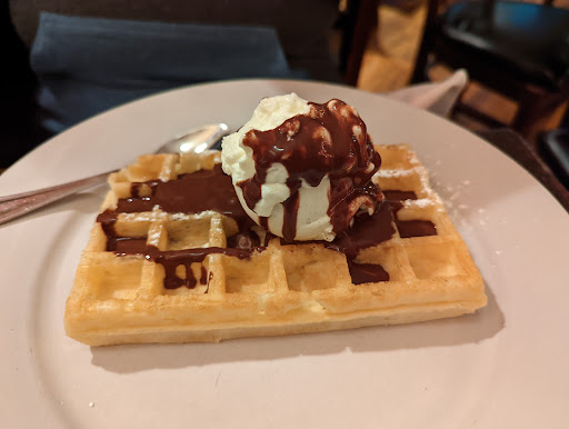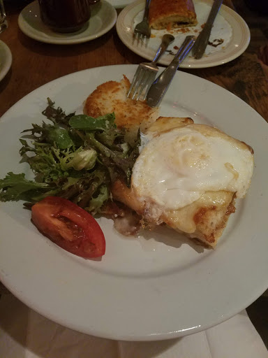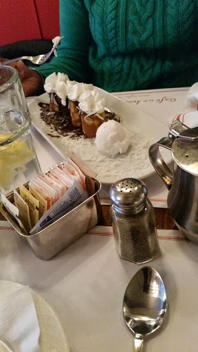 Went there for breakfast/brunch on a Sunday (around 11:00 AM). Seats were available, service was very prompt, and the food was just what you would expect on a Sunday morning: nothing crazy gourmet, but satisfying and properly portioned. My wife had the Crepes Hollandaise and a vanilla latte (thought this would be similar to a vanilla chai latte...that was not the case). Eggs were cooked just right and portioned well for just one person. I had the Pancake Breakfast but (and I STRONGLY recommend this...) I substituted the vanilla corn flake french toast for the pancakes. Came with choice of 2 eggs (scrambled), bacon, ham, or sausage (bacon), homefries, toast, juice and coffee. They offer both regular OJ and fresh-squeezed (at additional cost). Tea selection was meager, but acceptable (Chinese Green). Following the tremendous breakfast was a Creme Brulee that was cooked PERFECTLY. A subtle and sweet way to conclude the meal, with another cup of tea (Earl Grey). The decor was simple French, with a modern comfortable feel. There is more seating than the pictures reflect. From the host to the server and busboy, the service was accommodating and timely. You never felt rushed, nor did you have to wait for your order; in fact, the food came out quickly and was hot and ready-to-eat!