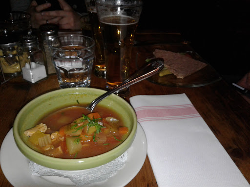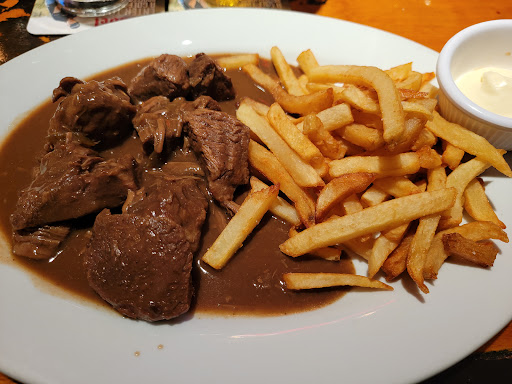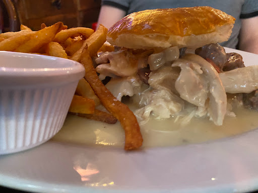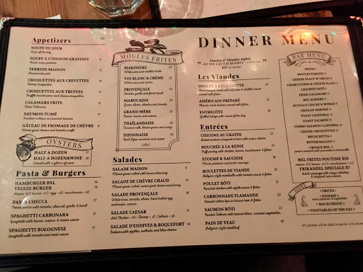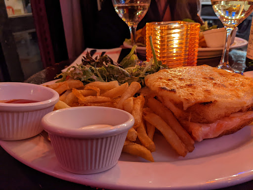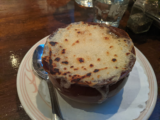 I used to love this place (a decade ago), but boy has it ever changed. They have a new sign, Im guessing the ownership is new. We went tonight and it tasted like diner food. My French onion soup arrived almost instantly and was burned of the top, it seems an overzealous torch was applied to cheese that seemed to have been melted on top a while back, perhaps yesterday even... The lamb burger was overcooked (well done when I asked for medium rare) and the meat so over-spiced it was hard to choke down. the bun was hard and cold, I didnt even want to taste it. The fries were skinny and tasteless, if I had to guess Id say they were poured frozen from a buy-in-bulk bag into the fryer. They werent tasty enough to have been real potatoes recently. My husbands chicken cordon bleu ($28.50) literally looked like something you could get at a diner, right down to the upside-down-cup-shaped mound of orange rice. Literally everything except the bread looked and tasted like a reheated frozen TV dinner, not like something made fresh for us. Even the drinks, which should be easy - I got a Pom-Fizz which is supposed to be made fizzy with champagne or sparkling wine, I forget which - either they forgot it or they used something old, because it was completely flat. It was good actually -but it was flat, and the maraschino cherry at the bottom was the cheap kind, not the kind you find in a drink from a quality cocktail establishment. We had to ask for water, and ketchup, and my husbands second glass of wine, so id call the service unremarkable. It was not crowded, 7pm on a Monday on the first day back from a blizzard. They were quick, Ill say that for them - so I guess if you are in a hurry before the theatre this might be just the ticket. Bumping them up to 3 stars for that, and the high ceilings which are unusual. Also - the decor has changed. It really used to have a lovely bistro-authentic look that made me feel like I was back in Paris. Theyve changed something - painted, reupholstered, tried to update it somehow - and the yellow walls, orange banquettes, yellow-orange pillars etc. make it hard to remember that true antique-y bistro feel. They obviously chose a decorator "on the cheap" or did it themselves - a mistake, for it does not look authentic or even nice anymore. The restaurant is certainly spacious and you do not get that claustrophobic feeling many other restaurants induce. I guess if it is competing with like a TGI Fridays for tourists in Times Square, perhaps it does OK. I was hoping for the Parisian bistro I remembered from the 90s and 00s tonight. But, I moved to Brooklyn in and I prefer farm to table now anyway, LOL.