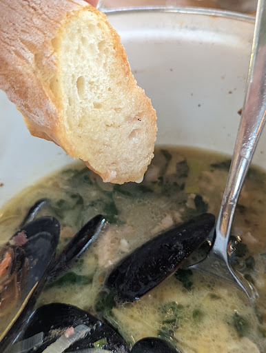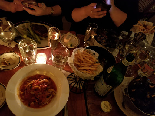 Been here twice over the course of a few months - once for lunch and once for dinner. Both times the service was very friendly (lots of smiles), the food was good, and the overall experience was very enjoyable. For dinner, we both had steak, my husband had a glass of beer, and I had a glass of bordeaux wine. The total was $57, which I think is pretty decent. Addressing a few prior comments (below), contrary to "Reynolds," we thought the bread was delicious (the olive oil that was served with the bread had a little kick - a little spice, which I liked). "Fireman Jim" (below) suggested going to Raouls which is a MUCH more upscale restaurant and is MUCH pricier. It is also located at the opposite end of NYC. Cafe du Soleil is a nice little Upper West Side neighborhood restaurant. Relaxed and comfortable.