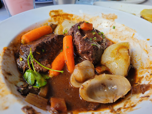 The service always sucked, but the food was OK. I was just there today and learned that they have stopped serving bread and fries with their overpriced omelettes. No one bestirred themselves to advise me of this change until I asked whether I would be getting them. I expressed mild irritation when told they no longer did. No one refilled my coffee, and I was completely ignored thereafter. I was overcharged, and when I was walking to my table, prior to leaving, one of the wait staff actually went out of his way to be militantly hostile to me. I have never, ever had such a bad experience in any capacity as a customer. I am encouraged to speculate that maybe their chiseling with bread, etc., is indicative of hard times in this place. Good. They should go out of business. AVOID THIS PLACE. It is run by hostile psychos.