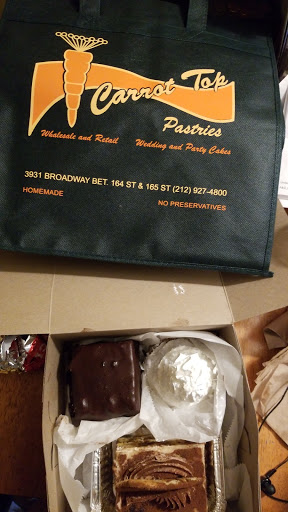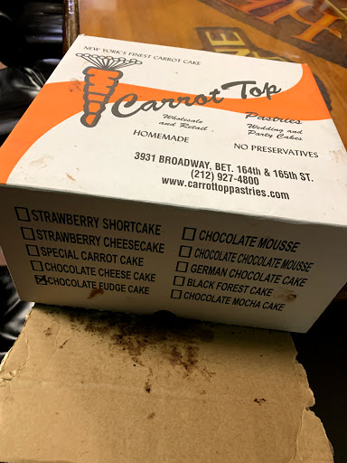 Thank the Cake Gods for Carrot Top Bakery! Last Sunday I had a dilemma, where I had made a dessert for a party I was attending. My dessert turned out to be a complete flop, and so I went into panic mode on what to do. I started to research local bakeries in my area and Carrot Top came up. I urgently called and told them I needed a carrot cake in the next five minutes (I was running late). The woman on the phone was extremely attentive, and put me at ease that they would have it ASAP. Five minutes go by, and a ring at my door bell. The carrot cake arrived, and the delivery boy was nothing but sweet and charming! Amazing would underestimate what a hit this cake was. Everybody claimed it was their favorite thing at the party, it was to die for! And everyone was dying to know where this hidden gem of a bakery was on the UWS! Absolutely thrilled with the outcome, would recommend to anyone! Thank you so much Carrot Top!