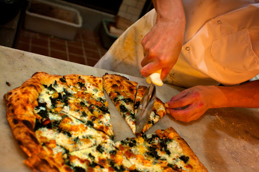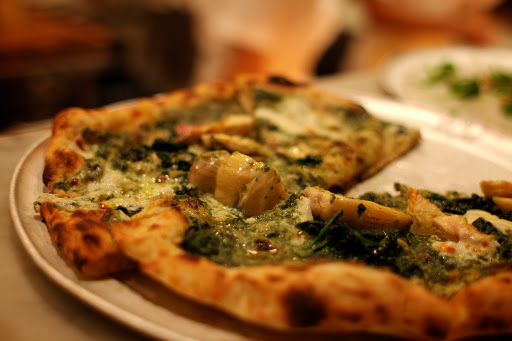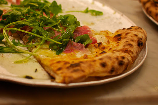 One of the trendy places to eat pizza in NYC. You would think the pizza would suck, it doesnt. My friend and I had come in here as a walk-in with a quick wait time. The service was on point. My friend and I ordered the margarita pie. It was so good we ordered a second and a third. Thin crust topped with a great sauce and creamy cheese. The pie was crunchy by lacked some of the chewiness. I suggest you get a table outside if the weather is nice, a lot of interesting things to see.