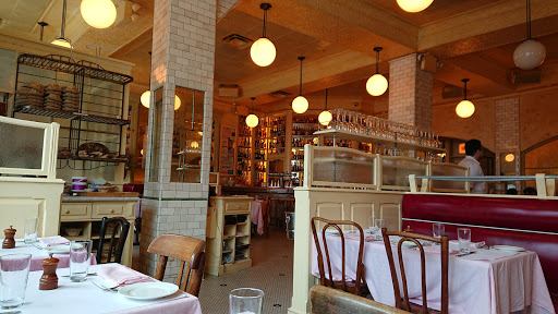 Full disclosure, were huge fans, early discoverers of Balthazar who moved on to enjoy Pastis, Schillers and Minetta Tavern, and now theres another joyous restaurant with his magical touch. The place was buzzing on opening night, the bar crowded and everybody seemed as happy as we were with the pizzas, etc. We had three different versions, all delicious, and what a kick to have the option of getting an egg atop a pizza. Wine list is reasonably priced and offers a terrific selection, including his signature carafes. Appetizer of mussels was fun. Desserts were great. The setting is fun and casual with staff wearing t-shirts and eager to please, friendly and helpful despite the fact that they can barely move through the crowds and are on the go. Our waitress, Liz, could not have been more delightful. With two bottles of wine, our tab came to just under $200 for four people (two desserts). Congratulations to everyone involved. They all appeared (deservedly) happy.
