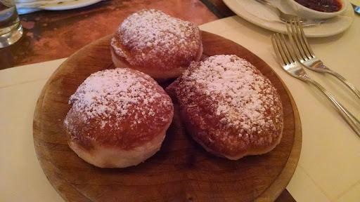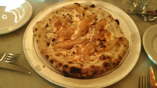 When I first walked into Pulinos, the sight of their decor filled me with awe. I like their location right on the corner of Bowery and E. Houston. Good spot. I tried two different pizzas. First, I ordered Cavolo Nero (black kale, smoked mozzarella, squash, and walnut pesto) and I thought the taste was a bit too sweet (squash) for me but the pizza crust was perfect and crispy The second pizza that my friend ordered, I liked this one better than Cavolo Nero. It was Prosciutto Arugula (thin prosciutto, raw arugula on top, pecorino, and garlic). Next time, Ill order Prosciutto Arugula. I had Gothic Rose - Pinot Noir from Oregon and it was OK. I preferred to have wine in a wine glass than regular small glass. The waiter was just fine but two busboys were sort of annoyed. They tried to take our unfinished foods/drinks away without asking. The busboys kept clinging each other while worked. Can they work independently? Pulinos takes online reservations. When we arrived around 9PM, it was already packed. And... we had our reservation ready which was nice and efficient.