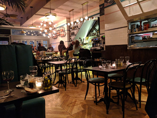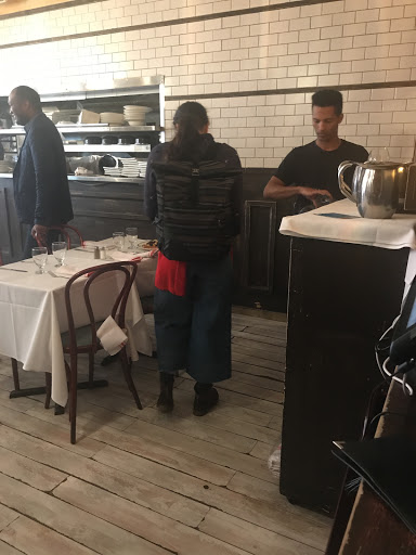 Very hangry about this place. I order first course and main course, everything come in the same time! Order glass of Provence rosé, they poor me a very bad sweet rosé! Ask for wifi they didnt care! Team was totally insufficient tonight! Put the clean glass rack on the top of the trash... For a French brasserie the wine list is not poor but very poor, only 3 wine to 12 where French !!! Last point this place is very very noisy, you can almost not hear the music ! First time in my lige that I write a comment but sorry I have to do it!