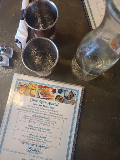 Just enjoyed a wonderful evening at Clove. I was researching Indian restaurants around my area and came across this place! The service was fantastic and so was my waiter. This friendly man was very helpful when describing each dish. So lets get started! First, I started with the tandoori chicken wings as my appetizer...they were super yummy...especially with the raita (cucumber/yogurt sauce). Next, I had the chicken tikka masala...this was one of the best Ive had. Perfect balance of cream and tomato mix to the sauce and it wasnt overly spicy, (like other kinds Ive had). The chicken was really tender and the rice was seasoned just right. I also had their garlic naan. Words cannot describe how amazing this bread was! It was soft and yet it had a little crunch. Not overly garlicky...and had a sweet taste as well. My taste buds were overwhelmed with all the flavors! Last, I had 2 of their deserts listed. Rasmalai was the first one. I was interested in it because it said it was a cheese ball served with a sweet sauce. The texture was really different...in a good way! The sauce went great with them. The firni was the last thing I tasted from this excellent restaurant. Im a big fan of rice pudding and this one was definitely one of my top favorites! The little sprinkle of coconut shavings on top, really pulled it together with the creamy cinnamon flavors. Overall, I enjoyed my meal and service at Clove...Ill definitely go back!!