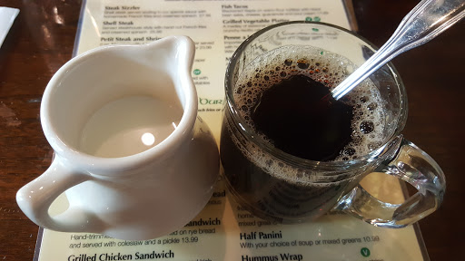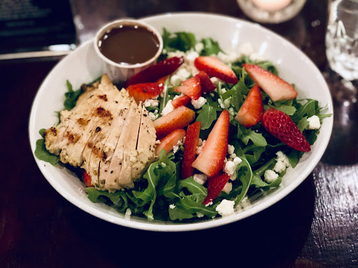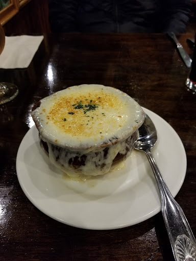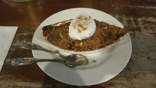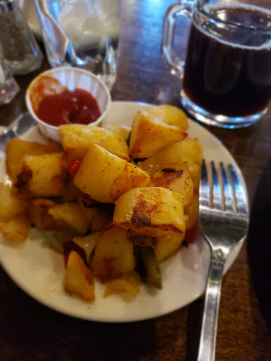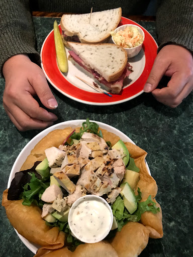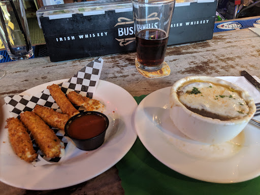 Ducked in here to avoid a sudden rainstorm, and were glad we did! I ordered a cheeseburger, wife ordered chicken pot pie. She loved her pie, tasted homemade. Crust in shamrock-shape, even. Now Im picky of burgers, but this one was great. Patty more than an inch thick, juicy, lots of cheese and onions, toasted bun, lettuce. Just like Id make at home! I substituted salad for fries, because health. The salad was great, it had seeds and dried cranberries in it. No dressing, but then again, I didnt specify, so whatever. I enjoyed it immensely.