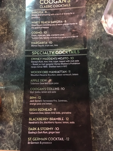 Stopped by Coogans after an event at Columbia University so the proximity and the outdoor seating is what brought me here. I ordered a burger and fries. Bad to mediocre experience unfortunately - burger was fairly good but the fries were soggy and lukewarm. Like they sat for much too long after being fried up. Also the server was incredibly inattentive not offering to bring more drinks and also forgetting multiple times to refill water (after it was requested) on what was a really warm night. I wont be going back.