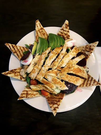 趕上了朋友吃飯在這裡。一切都很好,但不是很顯著。我得到了Shakshuka,它是好吃,但在調味品方面相當乏味。也試過Pometini和地中海莫吉托,並會推薦的飲料對食品在這裡。該餐廳是可愛的,雖然-所有的彎曲的鐵和暴露磚。