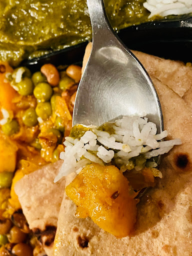 Great quick bite, just dont plan to eat it here! Dal, Chickpeas, and Saag with Broccoli were all delicious.