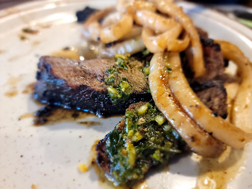 Visited on a rainy Saturday night hoping for an enjoyable evening. The place was packed to the brim, as it should be on a Saturday night, so I made my way to the bar for a drink. While waiting near the bar for a group of my friends to order, the man setting up the equipment for the live band that night asked in a very stern tone if there was something he could do for us. I said that I was waiting for the bar and made an offhanded comment about joining him on the small stage to "rock out" in an attempt to make conversation. He responded by saying, very sternly again, that I shouldnt play with him. "Dont play with me boy" he said, stepping within a foot of me. He told me not to "touch any of his sh**" or hed "walk my a** out the door." He then told me not to even think about stealing from him, or things would get "a lot uglier for me." I was dumbfounded and had nothing further to say. I walked to my group of friends, ordered my drink, and enjoyed the rest of my night. The food, atmosphere, and service was excellent, save for that one aggressively sour apple that I was privelaged enough to take a bite of that night. I can legitimately say that this one overly angry and protective man effectively ruined my desire to return to this restaurant. I have contacted management about the issue.