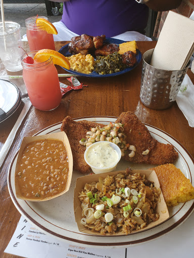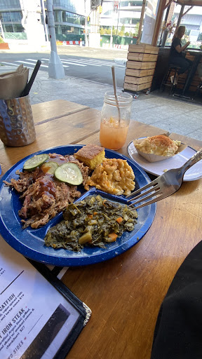 The food here is amazing!!! My employer had a staff luncheon here and I came back the same week to take my mom for her birthday. It was great the first time and just as good the second. The service here was also great. Our waiter, which I wish I remembered his name, was very friendly to us and checked in very often to ask us if we were okay and to swap out used utensils when needed. The wait for us was not long either and when our chair and tables were wet, a staff member addressed it immediately. The drinks are good. My drink, a punch (forgot the name), was super strong. I wish I would had requested a side of juice just to balance the alcohol. The food.... whoa baby! The macaroni and cheese, collard green, salted potatoes, candied yams, Korean ribs, brisket, ribs, chicken, cornbread... ALL OF IT WAS AMAZING. For the first 10 minutes my mom, friend and I were just were just grunting with contentment of how good the food is. My mom and friend never been and they look forward to going back soon. PS- if you go on a date or relaxing outing, across the street is a pier where you can sit on a bench and chill out (when is at you discretion). This restaurant also plays good music and art atmosphere ambience fits the theme of the restaurant. Last but not least- the bill... for 3 entrees including one extra side, 2 appetizers (salmon cakes that could be bigger and the deviled eggs, both were amazing), 1 alcoholic beverage, 1 virgin pina colada, and a lemonade, the total was $97. That is good considering all that we had. I look forward to going back and hope for the same experience.