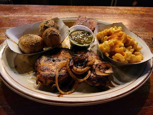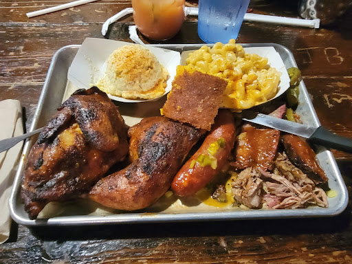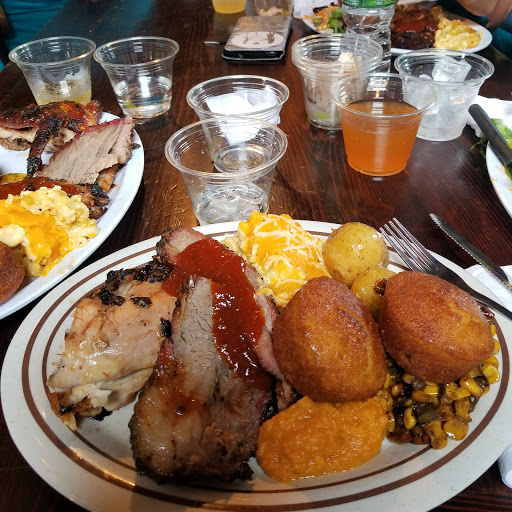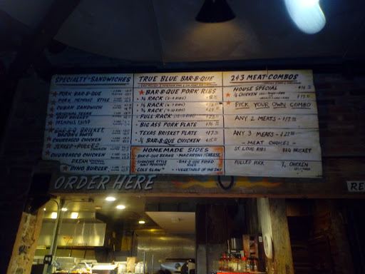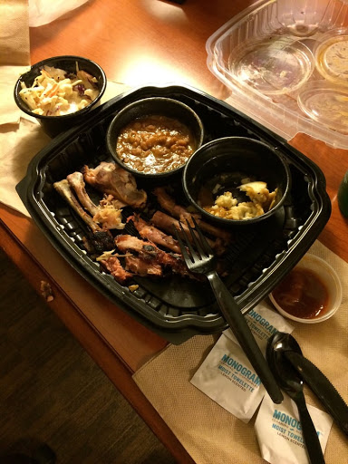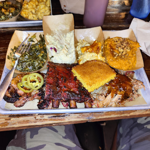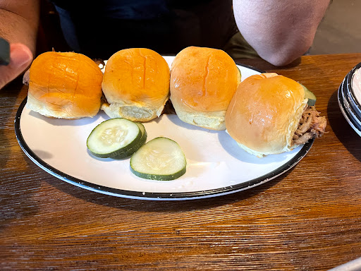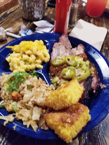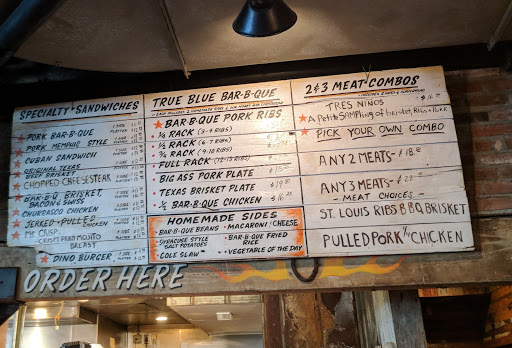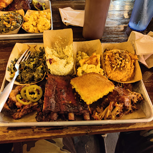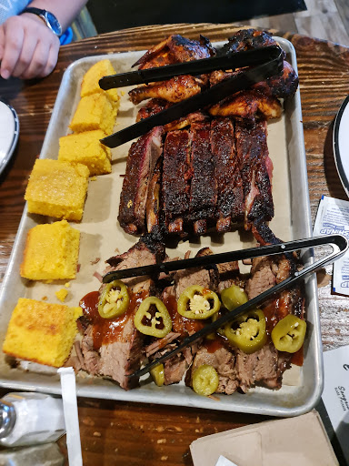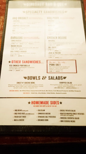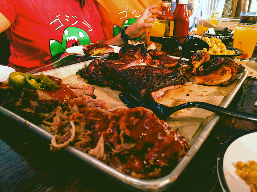 Dino BBQ is miles better than something like Dallas BBQ but the quality isnt up to par with higher end BBQ joints. The first time I had it was on a Yelp cruise where they were serving pulled pork sandwiches and I though it was great. Since then I havent really had an amazing experience. This was my first visit to this location. We started off with the nachos. Some of the photos on here make them look amazing but they werent that large or with as many toppings and the photos suggest. The cheese tasted like it came out of a can. I went with the tres ninos for dinner. Pulled pork was definitely my favorite of the bunch. Brisket was dry without a ton of flavor. The ribs were good but not as tender as I would have liked. Nothing has much of a smoke flavor which is a real disappointment, I love my BBQ to have a nice smoke ring with some heavy smoke flavor. The mac and cheese and sweet potatoes were very good. BBQ fried rice was interesting, nothing something I would get again but not bad either. If I was looking for reasonably priced BBQ it would be hard to convince myself to come here over Mighty Quinns. The price point is very similar and I have to give the nod to Quinns on quality and flavor. Dino BBQ has gotten some major competition in the past few years and I feel like it hasnt held up well.
