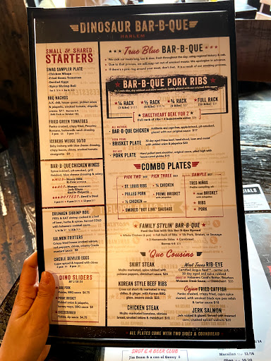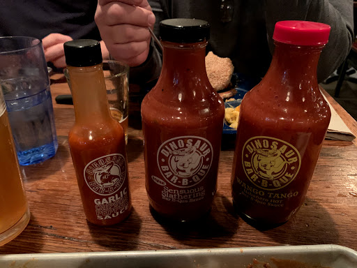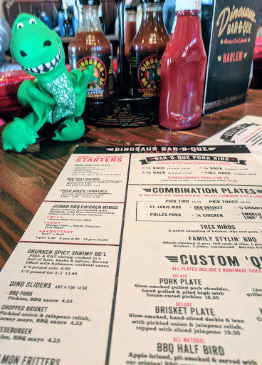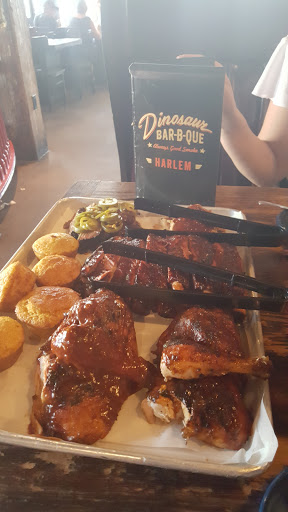 3.5 stars - My first dining experience at this infamous BBQ chain was actually in Rochester while on my interview trail. Remembering how much I enjoyed the chicken + the side chili, I signed up immediately after seeing the deal on Howaboutwe. My fiancé and I appeared about 15 mins late to our reservation after epic train fail. To our surprise, they held the table for us even though there was a line through the door and every person walked in was quoted for an hr and half wait. Although this place was packed to the max - our server was beyond attentive and accommodating to us. Our deal which was brought out almost immediately after seating included a sampler platter, 1/4 rack of ribs, 2 sliders, a dessert, and two flights of beer (4 flavors each). We were allowed to swap out the beer for soft drinks - on top of that, he pushed for us to get an extra free dessert to make up for the price difference we paid for the deal. The food wasnt anything extraordinary - perhaps its because Im not a big BBQ fan to begin with. Although the ribs were fall off the bone good, definitely wished I had the same chicken I had in Rochester instead. In addition, They didnt have the chili as a side so we opted for the sweet potato and BBQ beans which were both just ok. They also sold out on the chocolate ice box so we went with their Dino cheesecake and keylime pie - again just your standard sweets. Overall definitely an awesome deal especially for the amount of food and service we received. But I have to say Rochester dinosaur BBQ was much superior!