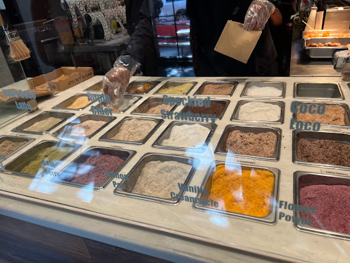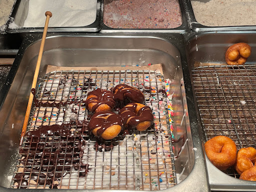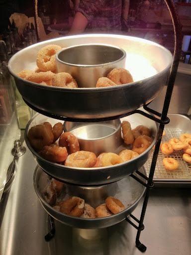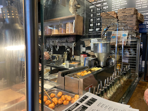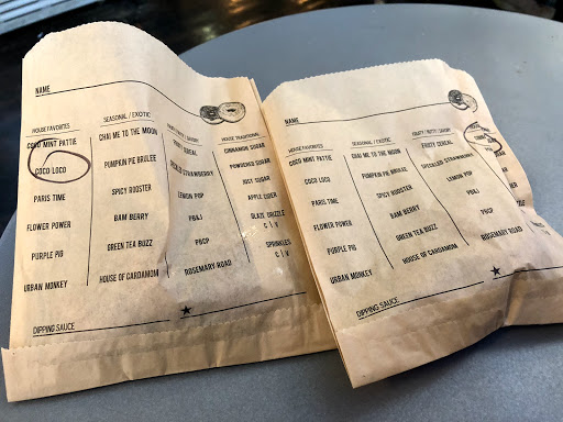 Dangerously delicious bite sized goodies. Its bizarrely hypnotic just to watch that small contraption by the counter making those cute little donuts. There are plenty of seasoning to choose from. I went with purple pig (maple and bacon) and Paris time (lavender). Both are fun to eat, though Im partial to Paris time (purple pig flavor strangely resembled that of a corned dog). At $1 a pop, it isnt the cheapest snack, but it sure is fun to eat! Tip: ask for those freshly made donuts. They taste far better!