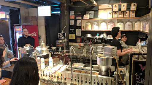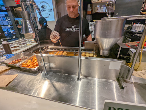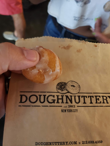 Doughnuttery is located in a small corner of Chelsea Market, but if it were up to me, thered be one in every neighborhood in NYC! Here youll find delicious hot and fresh miniature doughnuts which can be coated with a selection of crazy sugars. For my first trip, I just wanted to snack on something so I ordered a half dozen - 3 coated with Cacaoboy (cacao, sea salt, and black sugar) and 3 with PBCP (Peanut butter, cayenne, and pretzel). They were out of this world! The blend of flavors were something new to my pallet and I know Doughnuttery will be a staple for any trip I make to Chelsea Market in the future. Heres a tip: Try ordering 2 or more complementary flavors and then mix them yourself!