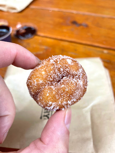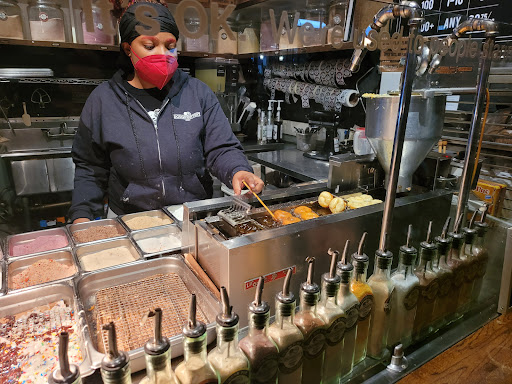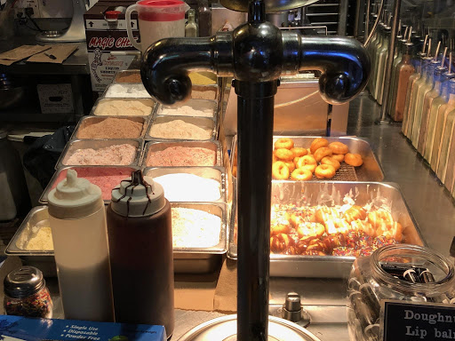 This is a fun treat, because you get to see how the doughnuts are made with a cute little conveyor belt. The doughnuts come in fun flavors, and theyre small enough that you can buy a bag, share it, try different flavors, and not feel like you overate. This great fun for kids, and adults wont mind it either. 4 stars instead of 5 because at the end of the day the doughnuttery is more about novelty than quality. All other things being equal, Id rather be eating a quality cider doughnut somewhere that does doughnuts right, without the bells and whistles.