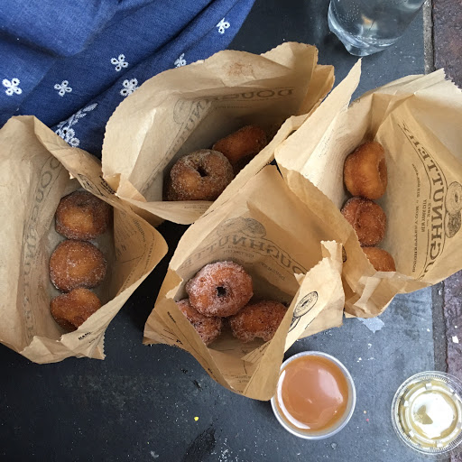 Doughnuttery serves adorably small and delightfully fresh from the frier doughnuts. Portions come by the half or whole dozen, which can easily be devoured in a blink by a couple of eager eaters. We tried the classics: vanilla glaze, powdered sugar, and cinnamon sugar. All delicious, though the cinnamon sugar was my favorite (odd for this glaze aficionado). Service is helpful and nice. Their space is one of the smaller stalls toward the back of Chelsea Market. Definitely worth seeking out for an indulgent snack.