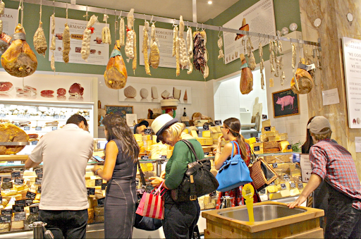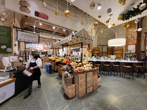 The service I received was as bad as the presentation was good. I wandered around bought some gelato and nougat, and visited the rotisserie area. The Beef looked delicious but I did not want a sandwich, so I asked the server behind the counter if I could buy some cooked beef by the pound. His name was Brian, he seemed to be the manager of that space, and he told me to come back at 4 and I could buy the beef by the pound, since the lunch sandwich rush was over at that time. I told him that I would be back, Brian told me that would be fine, and I went to find a bite to eat. I was by the vegetable counter and the waitress invited me to sit at the vegetable bar. I thanked her and sat down on one of the bar stools. The waitress behind the bar asked me what I wanted, she told me it was all delicious, as I began to order another server from behind the vegetable bar came rushing over and told all three of us (both waitresses and me) that I had to get up because the vegetable bar had closed at 2:30. Three minutes earlier. This embaressed the waitresses and disconcerted me, oh well, I had beef at 4, so I decided to continue wandering, shopping and buying. I bought some cookbooks, visited the wine shop, selected some fine barolos from the secure glass case to enjoy with the beef later and at 4 I wandered back to the rotisserie counter. Worst bad service moment, Brian was behind the counter, he had several cooked Rib Roasts on the platter, and seemed pained to see me again. He told me that "Its not going to happen, I wont sell you any beef by the pound, sorry, but its just not going to happen". So I handed him the basket of food that I had selected to go with the beef, did not go back to buy the barolos and left. The presentation is not worth the failure of basic courtesy from the staff. None of need to shop where we are not treated well.