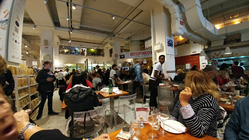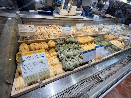 The first time I came here, I was with a friend of mine who recommended that we eat our lunch here and I had no idea what I was walking in to. This place is awesome! Every time I walk into this place I feel like a kid in a candy store.This Italian mega-emporium surpasses even my most extravagant expectations. Pantry staples like cannellini beans and dried mushrooms are pricey but quality is guaranteed. In the cheese and dairy departments I recommend "salvatore brooklyn ricotta" and black truffle butter. The fist department is one of the best in NY (better than Citarella); its filled with a fresh items such as alaskan salmon and some of the best tuna I have had and the Eataly staff is knowledgable, patient and helpful. The fish department is also a must for specialty items like bottarga and glass eels (see Batalis "Molto Gusto" for recipes using those in pasta). If you are dining at Eataly, I recommend the daily bruschetta at Le Vedura or the Fritto Misto at Il Pesce. Everything is served with the most flavorful toasted garlic bread that is miraculously both crispy and moist all at the same time. Before leaving, make sure to take a look at the beautiful variety of fresh produce, especially the exotic mushrooms and exquisite selection of pre-washed (what could be better?) lettuces. I think the Eataly staff wants you to start with your produce shopping, but even with their clever double-stack shopping cart, you will find it difficult to navigate your way through the rest of this Italian food mecca with everything you pick up in your first few minutes. Sure sometimes it gets pretty hectic but for the things you find in there its worth the stress. Every time Im in there I find something new and exciting to try and always end up loving it. Great fresh home made food that you can either sit and eat or take home. If your in the area make it your business to stop in there.