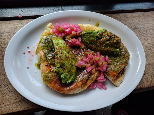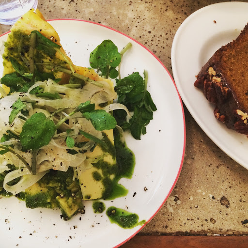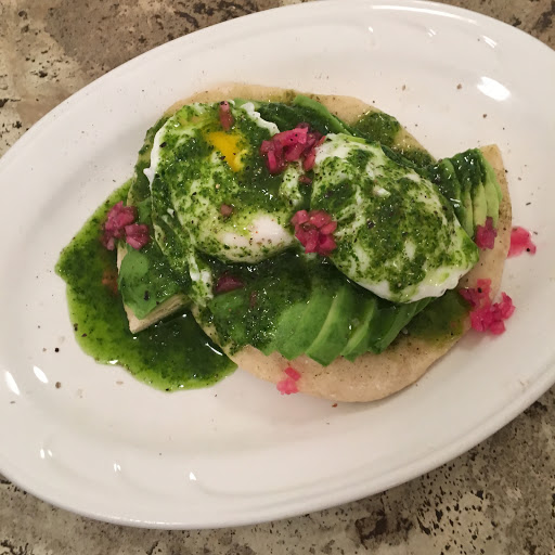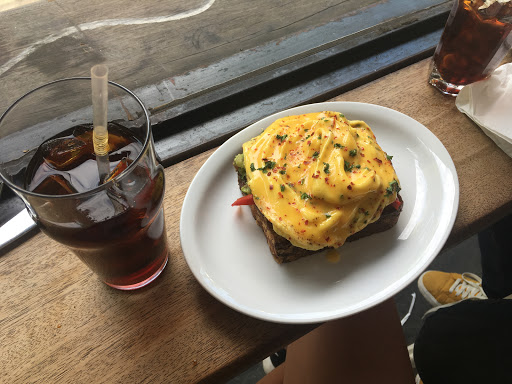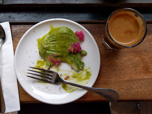 Super sweet staff, super good food! Poached eggs, Avo pita, and some seasonal drinks all top notch! Lime, Shiso Agua Fresca pictured here was refreshing and tasty! Really love that they serve Parlor Coffee as well. Juicy, bright, espresso shots mmm Cold Brew outside on a cold day feels gooooood.