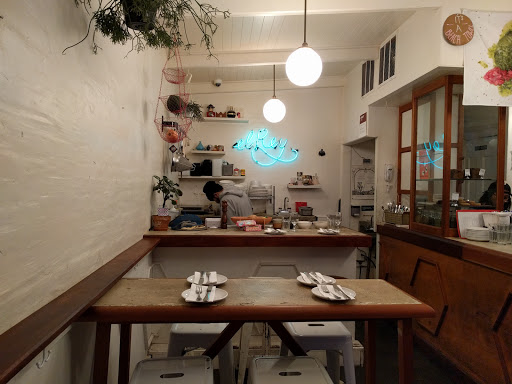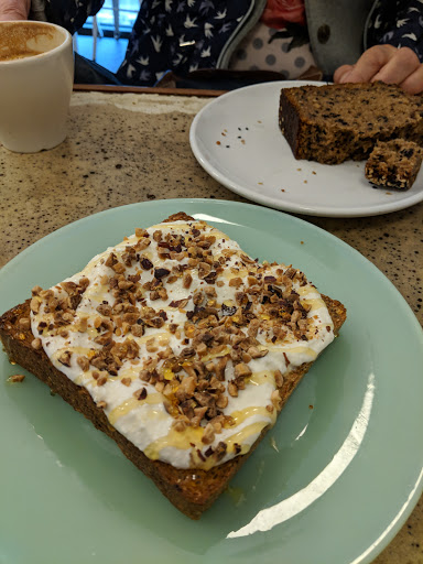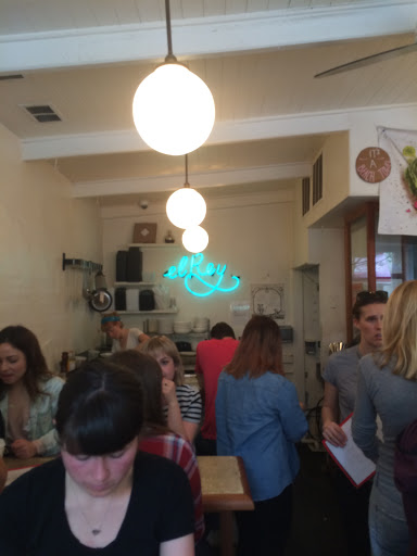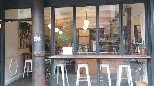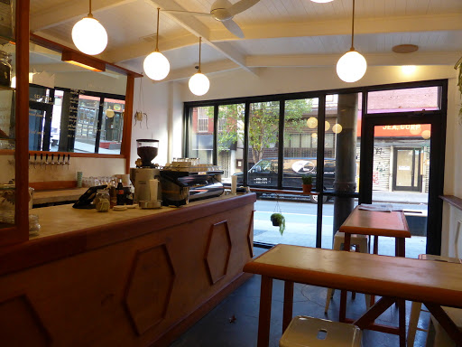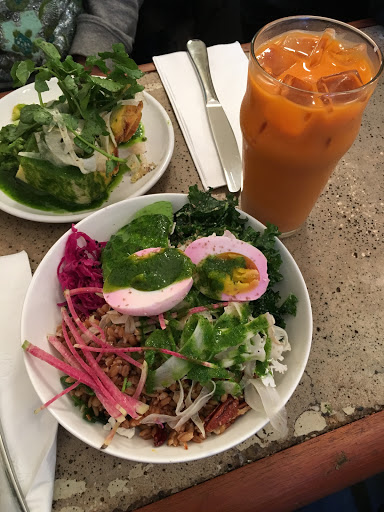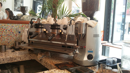 Cute, small space with just a few communal high tables and some counter seats. Featured in Aziz Ansaris Master of None! Great California-style healthy fare. Saw quite a few people come in for the Mexican mocha. The avocado with flatbread was delicious!