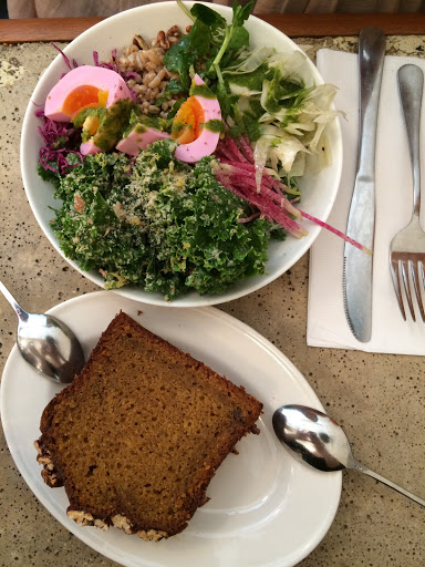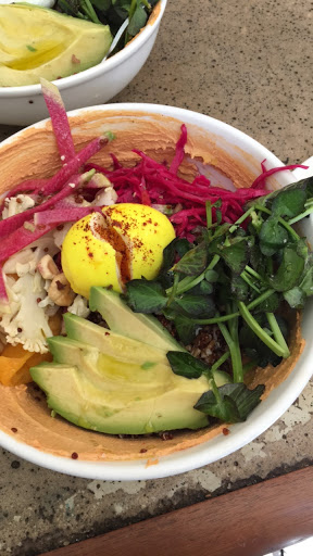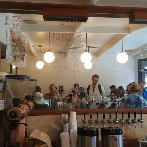 Im sad that this place is so popular now. Great for them, but not great for me. :( Fresh food, lots of veggie options, great coffee, wine, beer, and teas. Love the deconstructed falafel, the avocado del sur, and did I mention the excellent coffee? Come here for a laid back LA vibe (if its not packed).