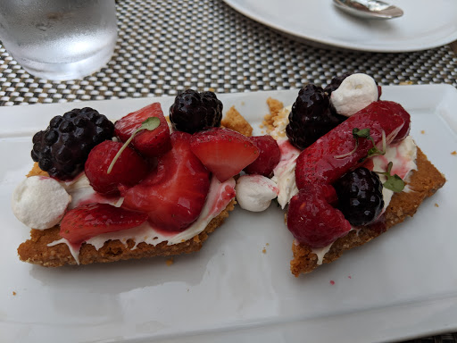 The urban Mediterranean vibe that echoes throughout the restaurant transposed itself right to the plate. We were able to taste not one, but three different olive oils to go with our bread, which was a memorable feature. We started with the steak tartare, which I had never had before but definitely will again, and the zucchini carpacchio. The portions were good-sized and very tasty. I had the Tuscan style cod with root vegetables for my entree and again, the portion was quite large, which is surprising because Ive often experienced smaller sized meals for special menu deals. For dessert we split the strawberry shortbread cookies and the chocolate pot de creme. The cookies disappeared in about two seconds and Im ashamed to say we couldnt quite finish the chocolate, it was very heavy. The service was attentive and fun, they even brought us each a glass of dessert wine when they realized they forgot to bring spoons for our dessert. I would return here when Im in the mood for a trendy dinner in the future.