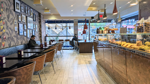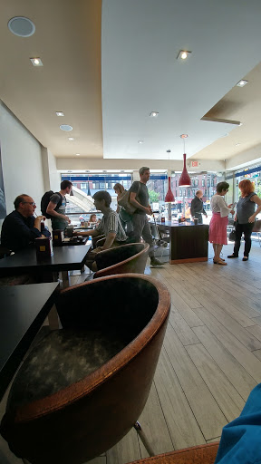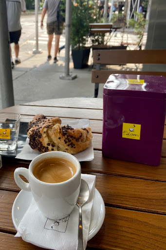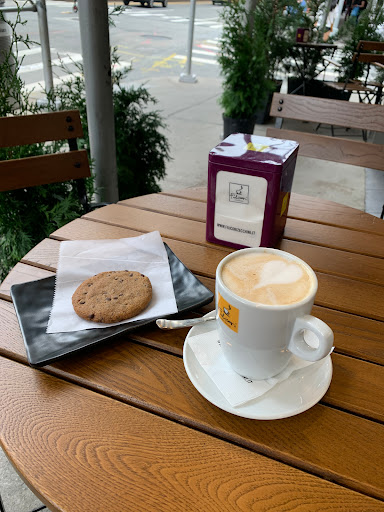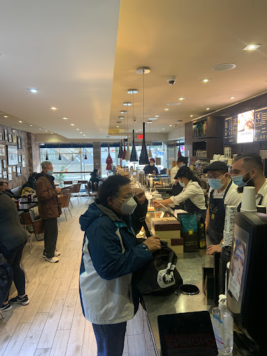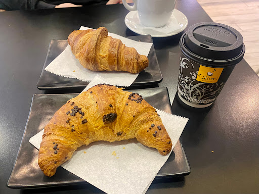 I do like this place very much. The coffee is great, and there is a real European feel to the place. There is a lot of place to sit and mostly has room, if you wanted to get some work done. There is Wifi, which is kind of slow, but enough for my needs. The staff is super friendly and quick with your order. My only complaint is their pastries. The look so so good, but they taste so so dry. I just feel like there is not enough turn around maybe that the pastries are just not great. It is a shame, as they do really look so good. Maybe they will get better, I will keep trying!