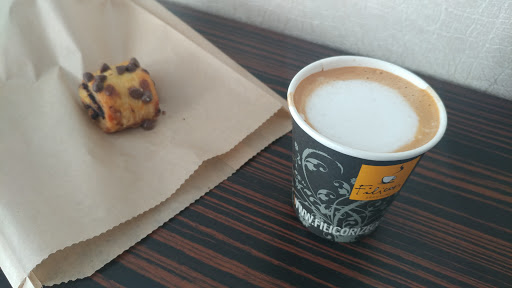 Their caramel latte is pretty good. The baked stuff is rather stale. Wi-Fi here is quite fast and its definitely a good place to work at. Keep in mind that the music is rather loud so you might need noise cancelling headphones.