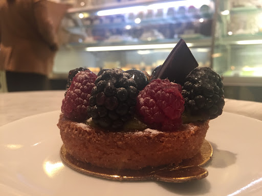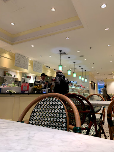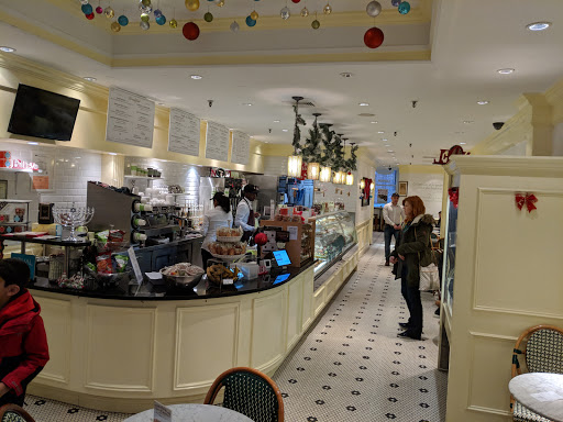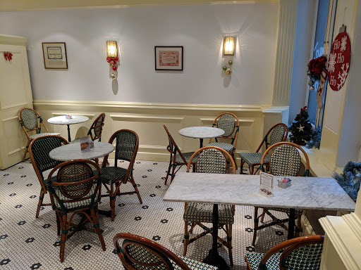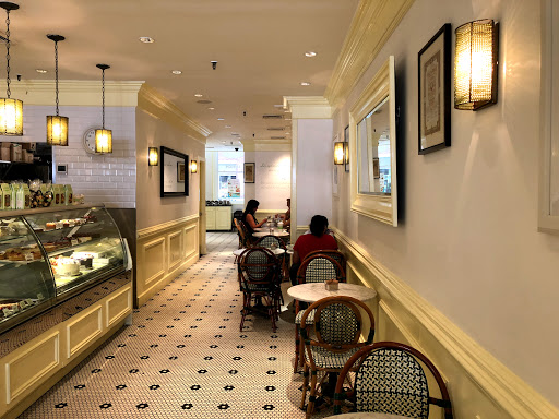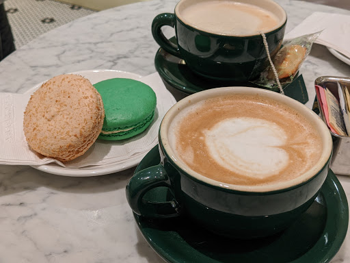 Fancy, eh? I no longer work in this area but crave the vegetarian sandwich, a mozzarella and fried-tomato panini. Sandwiches come with a little dish of olives, and coffees are served with a little cookie. A nice spot for an afternoon coffee break- the macarons and other pastries are beautiful.
