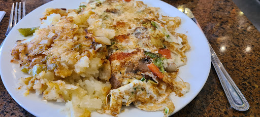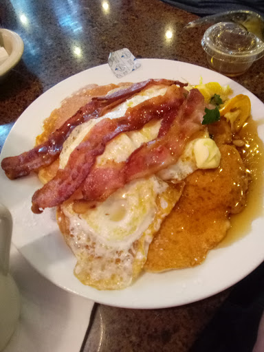 i gave 5 because 5 in the morning that we came i had a super nice warm chicken breast with fresh green mix and oil/vinegar aside,my friend had a vegetable omelette that she liked.i could never try anything else because usually eat protein or steamed veggie/salmon/chicken but 5 am is the only place open and we were served super fast